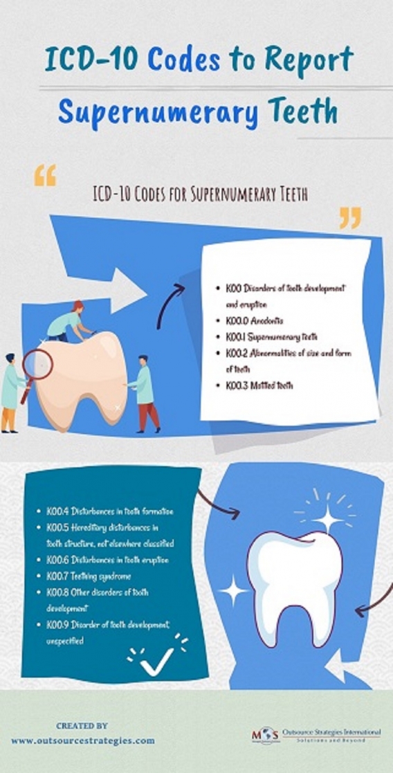 Diagnosis of supernumerary teeth or hyperdontia dental condition can be reported in medical claims using specific ICD-10 codes. https://bit.ly/3A7vqeQ. [more]