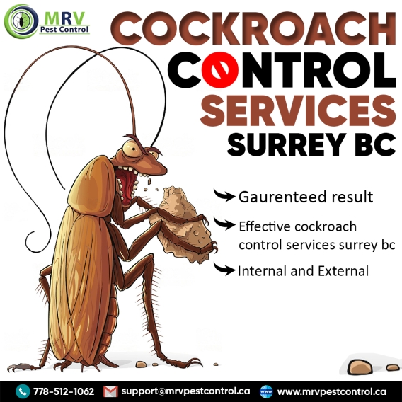 Cockroach Control Services Surrey BC At MRV Pest Control, we provide a complete solution to your cockroach problem, not only by killing them but also by making sure they do not occur again. Our cockroach control service employs a cutting-edge application of odorless gel bait to control cockroaches in your house. Call us right away! https://www.mrvpestcontrol.ca/cockroach/. [more]