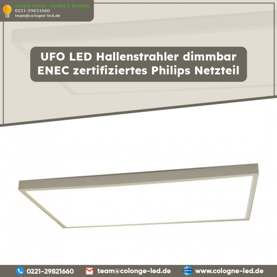 UFO LED Hallenstrahler dimmbar ENEC zertifiziertes Philips Netzteil Diese effizienten LED Hallenleuchten bieten wir als Hallenstrahler mit 100W, 150W oder 200 Watt Leistung an und haben ein sehr gutes Preis-/ Leistungsverhältnis. https://cologne-led.de/UFO-LED-Hallenstrahler-dimmbar-ENEC-zertifiziertes-Philips-Netzteil. [more]
