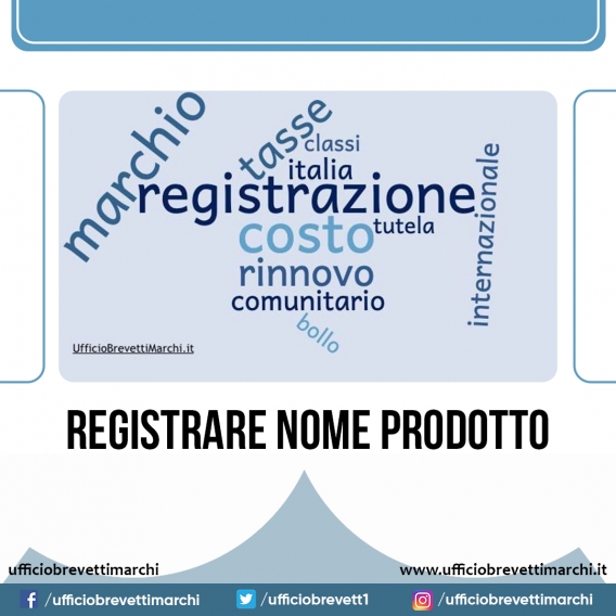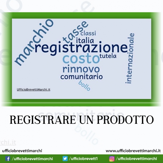 Registrare nome prodotto Se avete un prodotto e volete registrarlo in Italia, chiamateci subito al numero + 39 331 2249228. Vi aiuteremo a completare la procedura. https://www.ufficiobrevettimarchi.it/utilita/costo-registrazione-marchio/. [more]