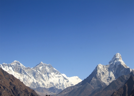 You see this view in the Everest Himalayas in the morning while hiking to Kala Patthar during the Everest Base Camp Trek, 'Everest Base Camp and Gokyo Lakes Trek', Everest Base Camp Helicopter Return Trek, and Everest High Passes Trek. You also see these views landing near Kala Patthar during the Everest Base Camp Helicopter. [more]