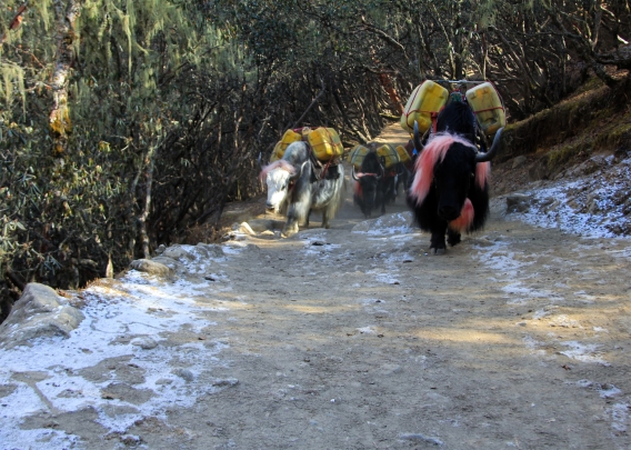People in the Everest Region are using yak, Jopke (hybrid between yak and cow), mule, and human porters for food and thing supply as transportation in the Everest Region. You see them on the way to the Everest Base Camp Trek, Gokyo Lakes Trek, Everest High Passes Trek, Everest Base Camp, and Gokyo Lakes Trek, Renjo La Pass Trek, Everest Base Camp Helicopter Return Trek, and Everest View Trek. You also see them walking in a long line while you will be flying on a helicopter. [more]