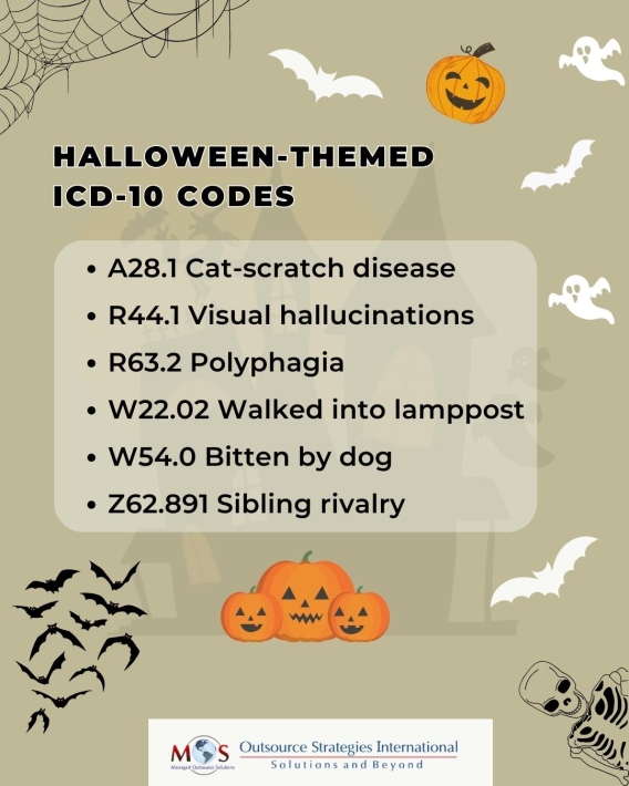 From “Frightening Phobia” to “Goblin Giggles Disorder” there are many funny Halloween incidents that can be reported using relevant ICD-10 codes. At OSI, we’re up to date with the changing medical coding standards and guidelines. https://www.outsourcestrategies.com/outsourced-medical-coding-services/
