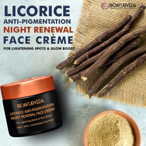 Licorice Anti Pigmentation Night Renewal Face Cream For Lightening Spots & Glow Boost #BIOAYURVEDA #licorice_for_skin #Face_cream #Anti_pigmentation #Glow #Spot Shop Now: https://www.bioayurveda.in/licorice-anti-pigmentation-night-renewal-face-creme