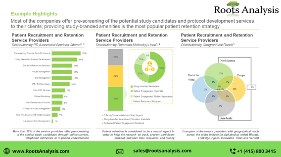 Patient Recruitment Services and Patient Retention Services market Size, Share, Trends by 2035 The recruitment of suitable clinical trial participants is often fraught with several challenges, including scientific and operational complexity, insufficient resources and expertise, issues related to data handling and increasingly stringent regulatory guidelines. As a result, outsourcing has become a popular operating model in this domain, as it enables reduction in costs, optimization of timelines and launch of respective offerings, as per planned timelines. In fact, several patient recruitment firms have begun adopting and implementing modern technical strategies, such as social media platforms, mobile applications, Electronic Health Records (EHRs) and Real-World Evidence (RWE) for patient enrolment. The USD 26.2 billion (by 2035) financial opportunity within the patient recruitment and retention services market has been analyzed across the following segments: Patient Recruitment Step Pre-screening Screening Trial Phase Phase I Phase II Phase III Phase IV Therapeutic Area Cardiovascular Disorders Oncological Disorders Infectious Diseases CNS Disorders Respiratory Disorders Hematological Disorders Dermatological Disorders Ophthalmic Disorders Others Key Geographical Regions North America Europe Asia Pacific Latin America Middle East and North Africa Rest of the World The Patient Recruitment Services and Patient Retention Services Market (3rd Edition), 2022-2035 report features the following companies, which we identified to be key players in this domain: BBK Worldwide Continuum Clinical IQVIA United BioSource (UBC) WCG ThreeWire Clariness Fidelis Research Ignite Data Innovative Trials Orphan Reach 3H Medi Solution Buzzreach Current Medical Information Center (CMIC) nRollmed Trialfacts Table of Contents 1. Preface 2. Executive Summary 3. Introduction 4. Patient Outreach Methods 5. Market Landscape 6. Patient Retention and Patient Recruitment Companies Competitiveness Analysis 7. Company Profiles: Patient Recruitment and Patient Retention Services Providers in North America 8. Company Profiles: Patient Recruitment and Retention Services Providers in Europe 9. Company Profiles: Patient Recruitment and Retention Services Providers in Asia-Pacific and Rest of The World 10. Partnerships and Collaborations 11. Recent Trends in Patient Recruitment and Retention 12. Future Growth Opportunities in Patient Recruitment 13. Case Study: Regulatory Landscape of Patient Recruitment 14. Patient Recruitment in Trials Focused on Personalized Medicines and Rare Diseases 15. Analysis of Demand for Clinical Trial Participants 16. Market Sizing and Opportunity Analysis 17. Concluding Remarks 18. Executive Insights 19. Appendix 1: Tabulated Data 21. Appendix 2: List of Companies and Organizations To view more details on this report, click on the link: https://www.rootsanalysis.com/reports/view_document/patient-recruitment-and-retention-services-market/245.html News article Biopharmaceutical Filtration Market Learn from experts: do you know about these emerging industry trends? mRNA Therapeutics and mRNA Vaccines Industry: Current Scenario and Future Trends Exploring How Artificial Intelligence Is Transforming Digital Pathology About Roots Analysis Roots Analysis is a global leader in the pharma / biotech market research. Having worked with over 750 clients worldwide, including Fortune 500 companies, start-ups, academia, venture capitalists and strategic investors for more than a decade, we offer a highly analytical / data-driven perspective to a network of over 450,000 senior industry stakeholders looking for credible market insights. Learn more about Roots Analysis consulting services: Roots Analysis Consulting - the preferred research partner for global firms Contact: Ben Johnson +1 (415) 800 3415 Ben.johnson@rootsanalysis.com #PatientRecruitmentServicesandPatientRetentionServicesMarket #PatientRecruitmentServicesandPatientRetentionServicesMarketSize #patientrecruitment #clinicaltrialpatientrecruitment #clinicaltrialrecruitment