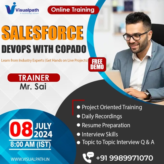 Online FREE DEMO On Salesforce DevOps with Copado JOIN link: https://bit.ly/3zQpdHI Attend Online #FreeDemo On #SalesforceDevOps with #Copado by Mr. Sai. Demo on: 24/07/2024 @ 8:00 PM IST Contact us: +91 9989971070. WhatsApp: https://www.whatsapp.com/catalog/919989971070/ Blog link: https://visualpathblogs.com/ Visit: https://visualpath.in/salesforce-devops-online-training.html