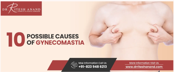 10 Possible Causes Of Gynecomastia Gynecomastia is a medical disorder marked by the growth of the male breast tissue. It is a very prevalent illness that can affect males of any age, including infants. Gynecomastia is not a severe medical problem because it is caused by normal hormonal imbalances that occur during adolescence and aging, as well as bad lifestyle practices. However, in other situations, its existence indicates major health problems such as cancer, liver failure, and autoimmune illnesses. In this post, we will look at the ten possible reasons of gynecomastia. By concentrating on these reasons, we seek to shed light on this illness. Gynecomastia in newborns and adolescent boys typically resolves as they mature and their bodies attain hormonal balance. To minimize swelling, however, in many situations, lifestyle changes, medication, or even gynecomastia surgery may be necessary. For example, gynecomastia caused by obesity and a bad diet can be treated with lifestyle modifications such as consuming nutritious meals and decreasing weight. You can consult Dr. Ritesh Anand for liposuction and trust in his 16 years of expertise as one of Gurgaons gynecomastia causes. Renowned for his precision and patient-centered approach, Dr Ritesh Anand delivers exceptional results, earning him a reputation as one of the best in the field. https://www.drriteshanand.com/blog/10-possible-causes-of-gynecomastia.php