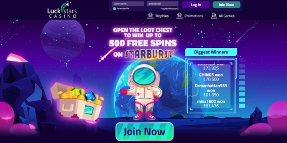 Luck Stars Casino is a brand New Slots and they’re offering all new players open your Loot Chest to win up to 500 free spins to use on the Starburst Slots! #newcasinositesuk2020 #newslotsitesuk2020 https://www.allbingosites.co.uk/luck-stars-casino/
