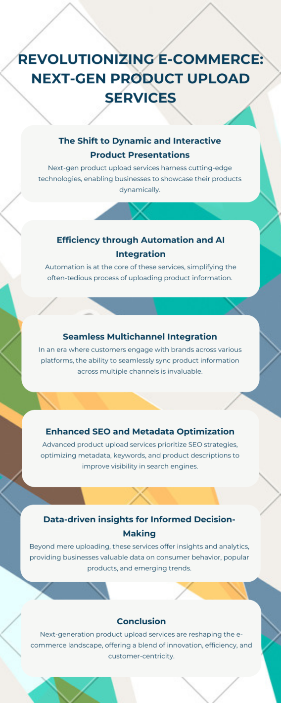 Revolutionizing E-commerce: Next-Gen Product Upload Services @https://itoutsourcingcompanyindia.wordpress.com/2023/10/31/revolutionizing-e-commerce-next-gen-product-upload-services/ The blog delves into the transformative impact of next-generation product upload services in the e-commerce realm. These services revolutionize product presentation by offering dynamic, interactive features like high-resolution images, AR experiences, and AI-driven automation, streamlining the process of uploading and managing product catalogs. Seamlessly integrated across multiple channels, they enhance SEO, provide data-driven insights, and empower businesses to create engaging customer experiences, enabling them to stand out and thrive in the competitive online marketplace. #productuploadservices #productlistingservices #productdataentryservices