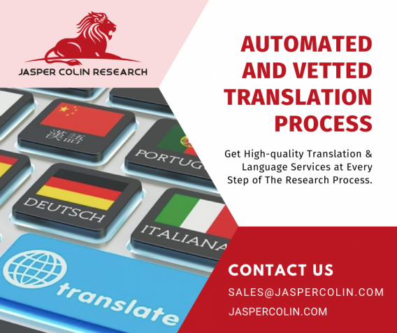 Jasper Colin Research provides high-quality translation & language services for every step of the research process. our linguists are market research trained as well as we use NLP-based translation tools for translations also it is verified and corrected by the JCR native domain research team. For more info, mail us Sales@jaspercolin.com or visit https://cutt.ly/mQIBg7C