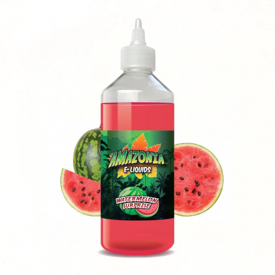 Watermelon Surprise by Amazonia E-Liquids 500ml a strong watermelon flavour with a surprising aftertaste. AboutAmazonia has the best flavour range there can be. These Flavours are soo good that people are coming back for more and more! The 100ml Range has all the types of flavours, from fruity and gummy to sugary to give you that all much need flavour.