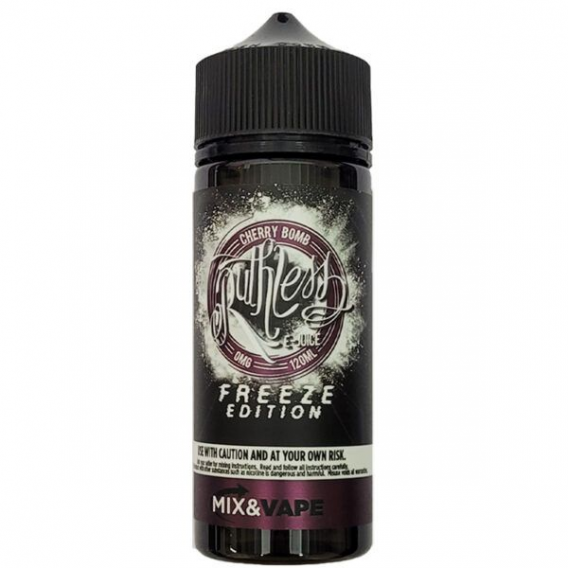 Cherry Bomb e-liquid by Ruthless Freeze brings an arctic blast of fruit flavour to your vape. The rich notes of cherry are cooled right down as icy menthol develops throughout. Cherry Bomb shortfill contains 100ml of e-liquid, but leaves room for two 10ml nic shots to be added. This means you can mix in two 18mg nic shots and be left with 120ml of 3mg e-liquid.
