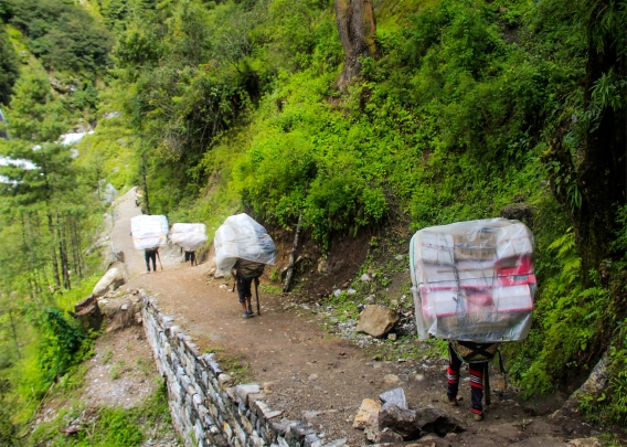 There are no trucks in Everest Region for the food and needs supply, so human porters, Yak, Jokpe (a hybrid of cow and Yak), and mules carry the stuff in the Everest Region. You see many of them on the way while you are on the Everest Base Camp Trek, 'Everest Base Camp and Gokyo Lakes Trek, Everest High Passes Trek, Gokyo Lakes Trek, Renjo La Pass Trek, Everest Base Camp Helicopter Return Trek, and Everest View Trek. You can see aerial views of long lines to them from the helicopter if you are on the Everest Base Camp Helicopter Tour.