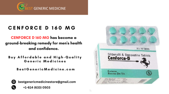 Revolutionize your intimacy with Cenforce D 160 mg, a dynamic blend of sildenafil and dapoxetine that ensures an unforgettable experience. Boost confidence, enhance stamina, and bring back the sizzle to your love life