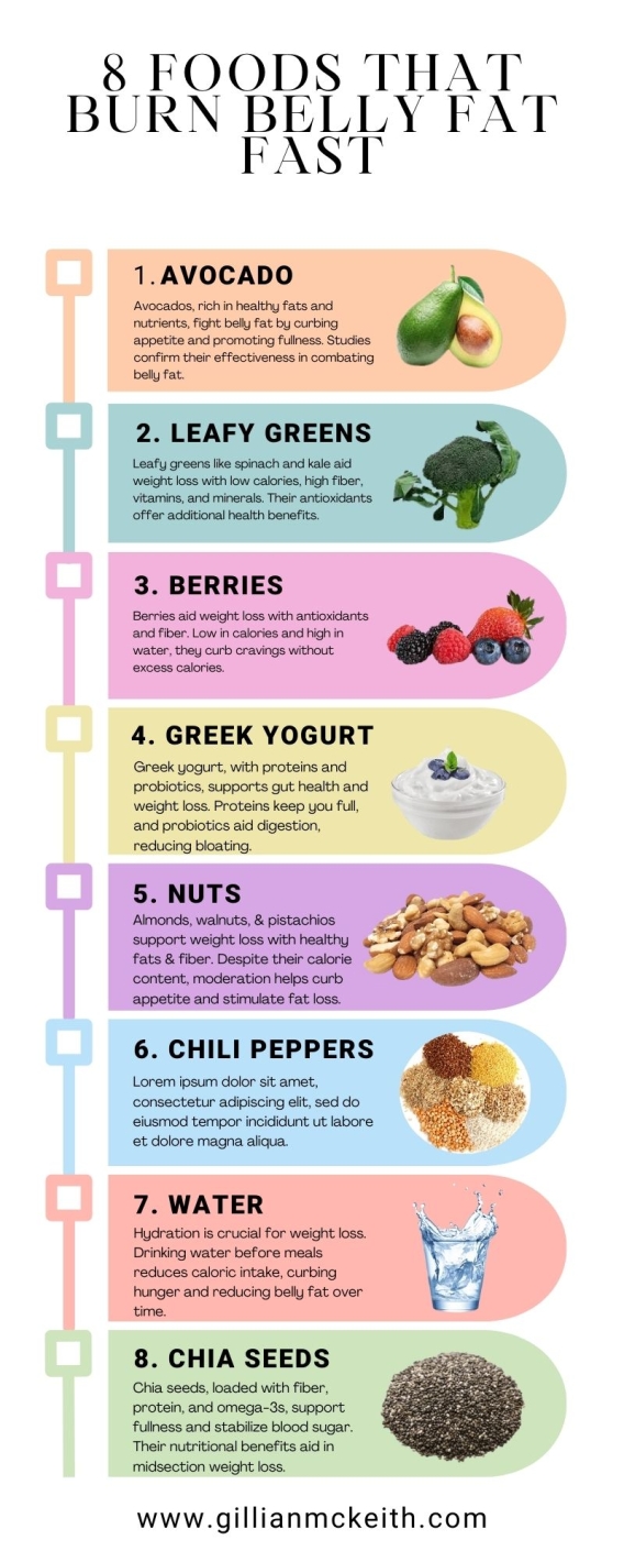 Explore 8 foods that can help you lose belly fat quickly. Learn about tasty options for a slimmer waistline and better health. For more information and personalized advice, visit Gillian McKeith's website: