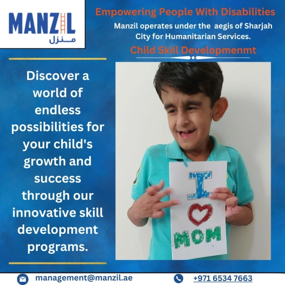 Explore the comprehensive approach to Child Skill Development for disabilities at Manzil Center in Sharjah, UAE. Our specialized programs cater to children with diverse needs, providing a nurturing environment where they can thrive. Through personalized support and innovative techniques, we aim to unlock each child's full potential, fostering independence, confidence, and success. Join us in creating a brighter future for every child, regardless of their abilities