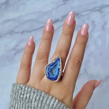 Visit: https://www.sagaciajewelry.com/collections/statement-agate-blue-rings