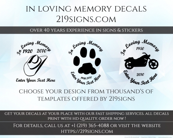 219signs basically use memory decal and stickers to decorate indoor and outdoor. It may be placed on any hard surface. You can also create your own custom in loving memory decals with easy to use our online design tools. https://219signs.com/decals-and-stickers/loving-memory-decals219 Signs provide a full service of designs signs online with unique online design tools allow you to design, preview and purchase your own banners and signs, vinyl banners, magnetic car signs, licence plates, vinyl decals, etc. Your banner design should be clean, clear and informative. Make a call on +1(219)365-4088 or visit our website. https://219signs.com/219signs offers the best magnetic signs and stickers that are made with standard quality materials, easy & quick to paste. Also, we offer the online design tool to create your own magnetic signs and stickers. For more details, call us at +1 (219) 365-4088 https://219signs.com/magnetics/custom-vehicle-magnetsSearching for the designs signs online at an affordable price, 219signs allow purchasing banners and signs, custom banners, vinyl banners, etc. Your banner design should be clean, clear and informative. Make a call on +1(219)365-4088 or visit our website. https://219signs.com/219signs offers the best loving memory decals that are suitable for any events. You can easily customize your decals from our online design tool or you can choose the best templates offered by 219signs. Make a call on +1(219)365-4088 or visit our website. https://219signs.com/decals-and-stickers/loving-memory-decalsWe offer the best quality of Yard Signs which can be designed with our Custom Online Design tool. https://219signs.com/signs/yard-signs219Signs is an online sign company that offers a variety of custom printing options like custom #yardsigns, vehicle lettering, custom #vinylbanners and much more. Visit the blog to know more about 219signs. [more]Design & buy your customized #aluminumsigns in Rounded corners, two-sided corner lettered for your business by 219Signs. Fast Shipping on Aluminum Signs Orders Now! Enjoy great service & low prices. https://219signs.com/signs/aluminium-sign [more]Creative Street | Road SignsBrowe 219signs for browsing the largest variety of custom road signs, we have tons of templates for helping you to get an idea of what you want in your signage. By the way our designs are fully customizable but you can start from scratch as well. For more details, you can contact us at 219-365-1764 or send us an email quintsigns@hotmail.com [more]Custom vinyl banners | Personalized vinyl banners 219signs is basically offering Custom vinyl banners which are great for promoting your store or event. Now get fast production, price match, and satisfaction For more details, call us at +1 (219) 365-4088 or visit the website. https://219signs.com/banners/custom-vinyl-banners [more]More than 50% of small business owners think that custom signs and banners are effective in attracting new customers without spending much. To know more visit our blog. Visit: https://diigo.com/0dwsw1 [more]219signs offers the best designed and customized yard signs that are available in different sizes and designs. These yard signs are perfect for any type of outdoor area. For details, call us at +1 (219) 365-4088 or visit the website. Visit: https://219signs.com/yard-signs [more]
