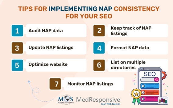 Optimize your NAP data for local SEO success! Consistent NAP information boosts your search ranking. Keep it updated with proactive monitoring. Don’t let this extra workload slow you down—partner with a top organic SEO company for support! https://www.medresponsive.com/services/search-engine-optimization/