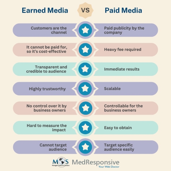 Paid media provides an immediate return on investment whereas earned media fulfils a free form of advertising. We provide digital marketing services to uplift your brand, be it through paid or earned media, as per your choice. https://www.medresponsive.com/services/digital-marketing/