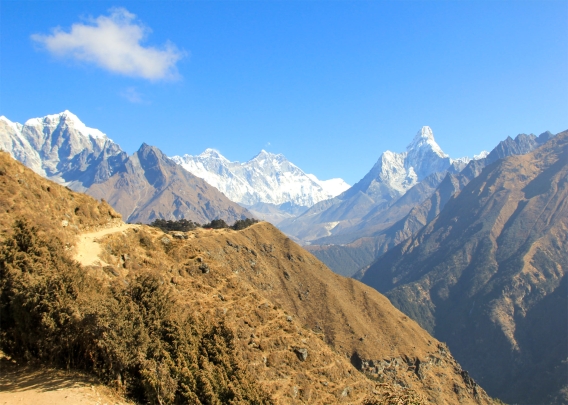 You can see Mount Everest from several vantage viewpoints in the Everest Himalayas. Kala Pathar offers the nearest view of this world's tallest mountain which you visit during the Everest Base Camp Trek and Everest Base Camp Helicopter Return trek. You can also reach Kala Patthar without many days' walk by flying on a helicopter, which is the Everest Base Camp Helicopter tour. Gokyo Ri offers the bigger shape of this mountain, where you hike during the 'Everest Base Camp and Gokyo Lakes...