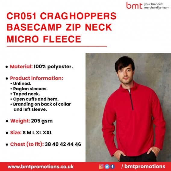 Get CR051 Craghoppers Basecamp Zip Neck Micro Fleece printed with your logo in the UK at the most attractive prices. Contact us now! https://bmtpromotions.co.uk/product/cr051-craghoppers-basecamp-zip-neck-micro-fleece/