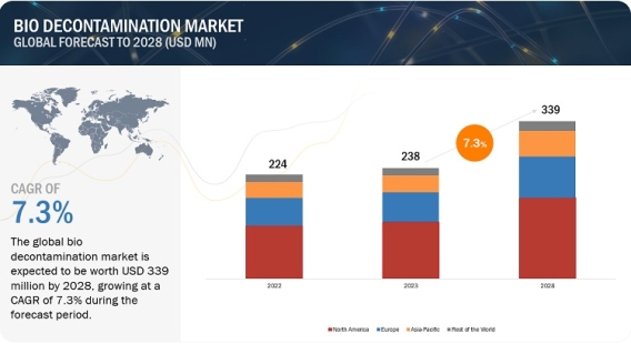 Bio Decontamination Market Anticipated to Reach $339 Million by 2028 https://www.marketsandmarkets.com/Market-Reports/bio-decontamination-market-104696777.html The global Bio Decontamination market is projected to reach USD 339 million by 2028 from USD 238 million in 2023, at a CAGR of 7.3% during the forecast period. The growth of this market is majorly driven by...