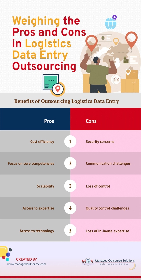 Pros and Cons of Outsourcing Logistics Data Entry Consider factors such as cost, control, and security when you make the decision to outsource logistics data entry. https://www.managedoutsource.com/infographics/pros-cons-logistics-data-entry-outsourcing/