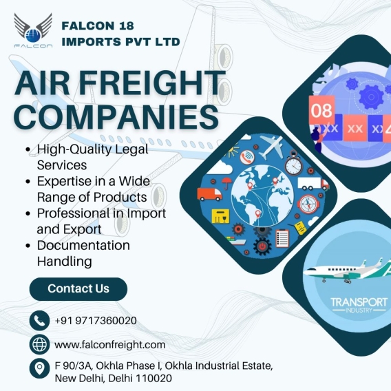 Air Freight Companies: Falcon 18 Imports Pvt Ltd The pride we take in our company is to introduce ourselves as one of the best air cargo agents in Delhi. Moreover, Falcon is a leading provider of Air Freight Companies in Delhi. Aside from this, we offer a vast range of international freight forwarding services and air customs clearance services. Furthermore, our company provides export or import consultancy services. Subsequently, our clients provide customized air freight logistics...