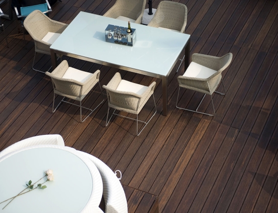 Bothbest Outdoor Bamboo Decking Carbon Small Ripple 1860x140x20mm is installed outside, like garden, swimming pool, public area because it is anti-moldy, long-life flooring. Bamboo decking is made out of strand woven bamboo flooring and we do the oil on the decking, so it will be water proof and it can last a long time. #bamboodecking