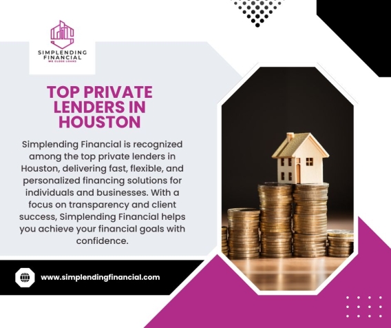 Simplending Financial, a leading name among private lenders in Houston, Texas, offers fast, flexible, and reliable financing solutions for real estate and business ventures. With personalized service, quick approvals, and competitive terms, we help clients secure funding with ease, empowering them to achieve growth, close deals faster, and reach their financial goals confidently. [more]